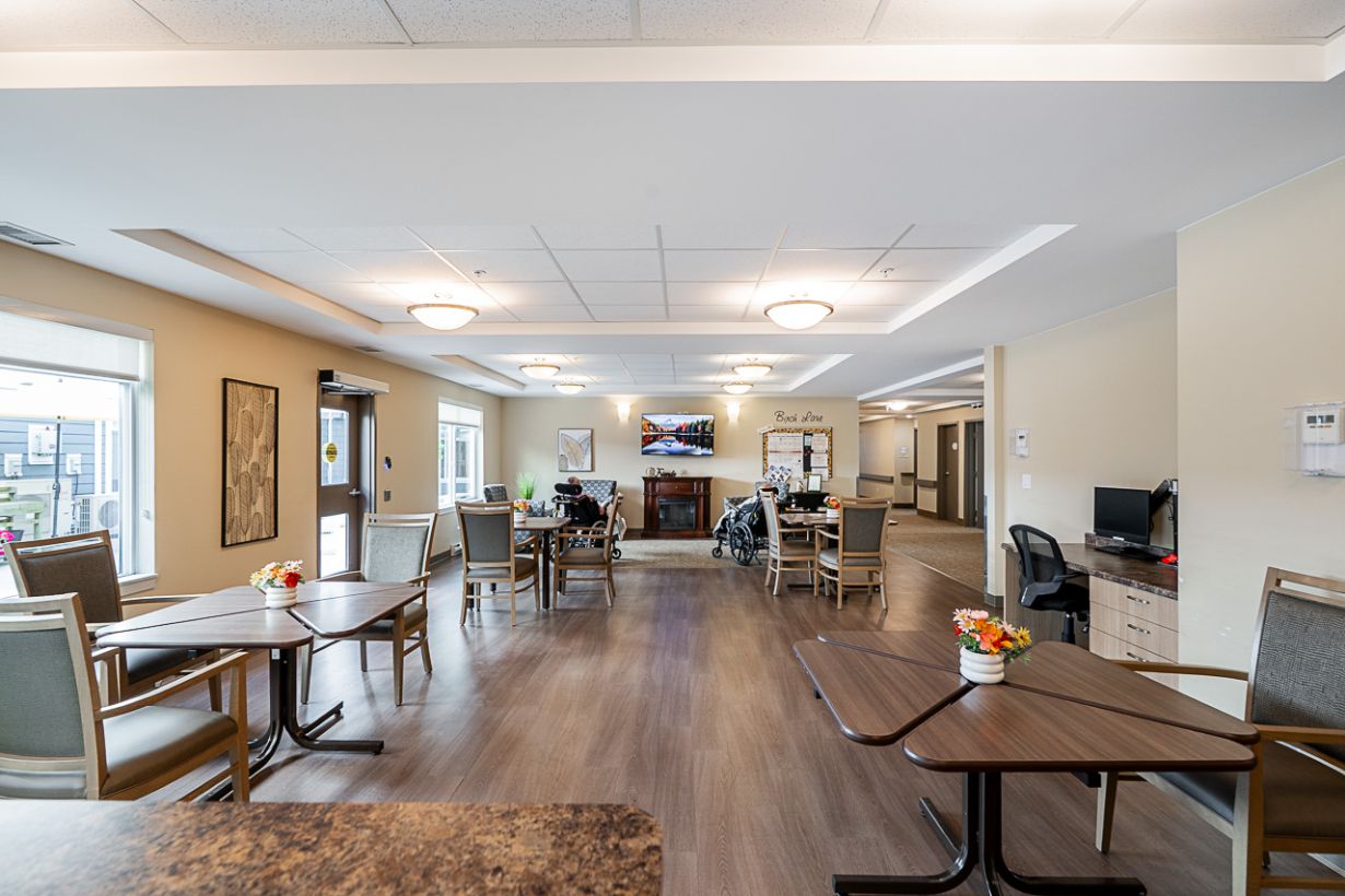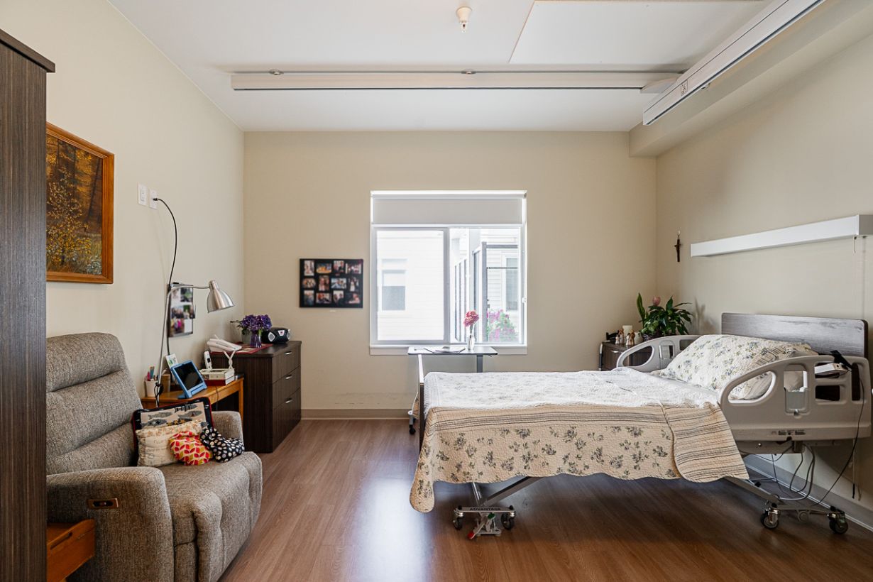 Fraserview provides 24-hour care to 199 residents in 14 distinct neighbourhoods, each with its own dining, activity, and family areas. Every resident enjoys their own spacious private room, furnished with a single bed, wardrobe, chest of drawers, and nightstand. Fraserview rests in a quiet residential neighbourhood, and the property boasts beautiful gardens with secure walkways, outdoor seating, and a gazebo. Activities reflect the interests and cultural diversity of residents, with programs and communications available in Cantonese and Mandarin.