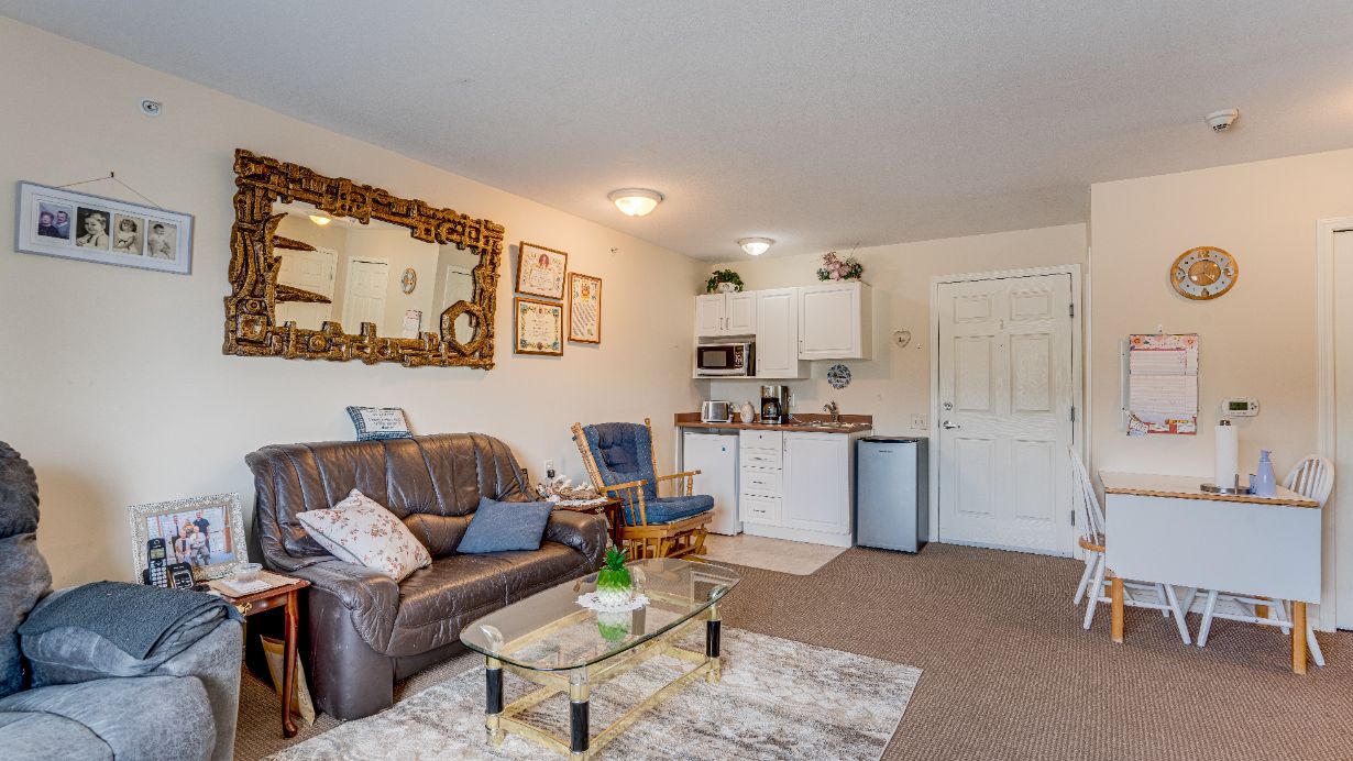 Spacious assisted living suites provide the perfect setting for seniors who are self-sufficient and enjoy their privacy, but need help with daily activities like meal preparation, cleaning, and laundry. Our caring and friendly staff offer the right amount of help for each resident. Each suite includes an open living area, a kitchenette with a small fridge, microwave, and sink, along with a separate bedroom and a large, fully accessible bathroom.